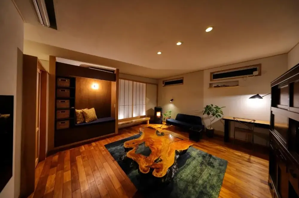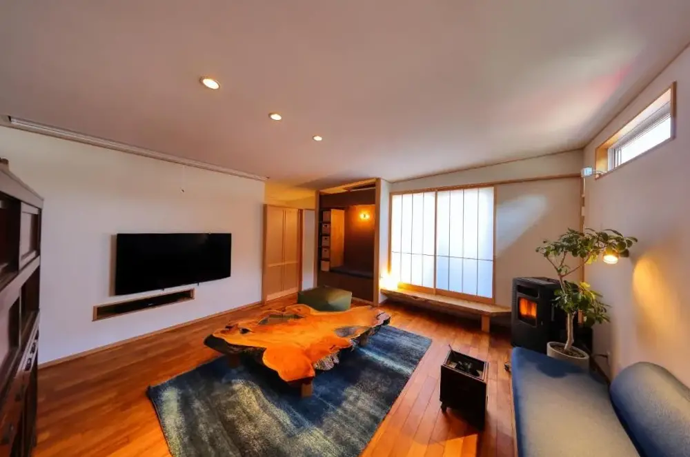 A family of 7 including 2 young children stayed here for one night. It was the first day of Golden Week and we finally arrived at the hotel in heavy traffic, but the host warmly welcomed us with tea and sweets and made us feel at home. The interior is very spacious and divided into an entrance space, a cafe/meal space (with an outdoor BBQ space in the back), and a living room, which I was very satisfied with as I was able to use them depending on the occasion. (It used to be a store.) The kitchen had a professional-grade refrigerator and sink, which I thought was amazing. This time, we bought some ingredients at a nearby supermarket and enjoyed it with the whole family at the BBQ space. I liked that there was a hearth in the middle of the desk where you could put charcoal and enjoy grilling. The inn also has alcohol (beer, local sake, wine, etc.) as an option, and although I didn't drink much this time as I was staying with a family, I felt it would be a good idea to stay mainly for drinking with friends. Since it was Fujiyoshida during the Golden Week, I thought it would be cold at night, but the bedroom was fully air-conditioned and comfortable, and I had a good night's sleep. It was so comfortable that I felt it was a waste to stay just one night.